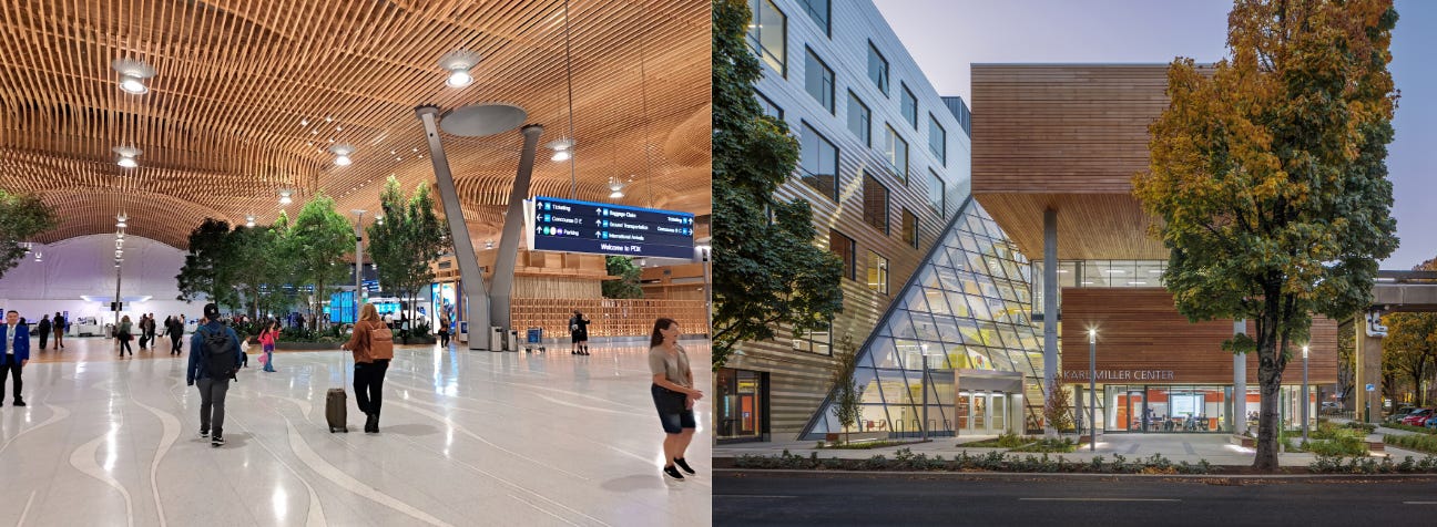 i spent a few days visiting portland and san diego. the trip was full of surprises. for instance, i didn’t expect that my two favorite places in portland would be the airport terminal and the portland state university school of business: