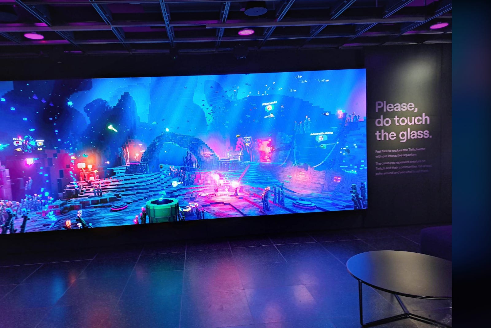i accidentally stumbled upon the twitch headquarters while walking around downtown sf. they have a cool office where one of the walls is a giant touchscreen, and the staff are very friendly!